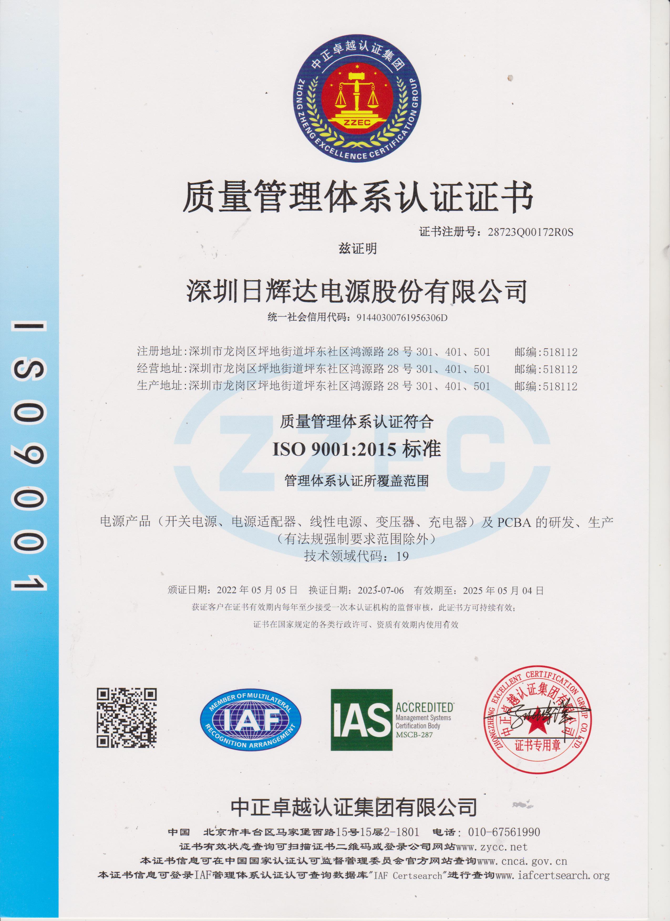 ISO 9001證書中文版