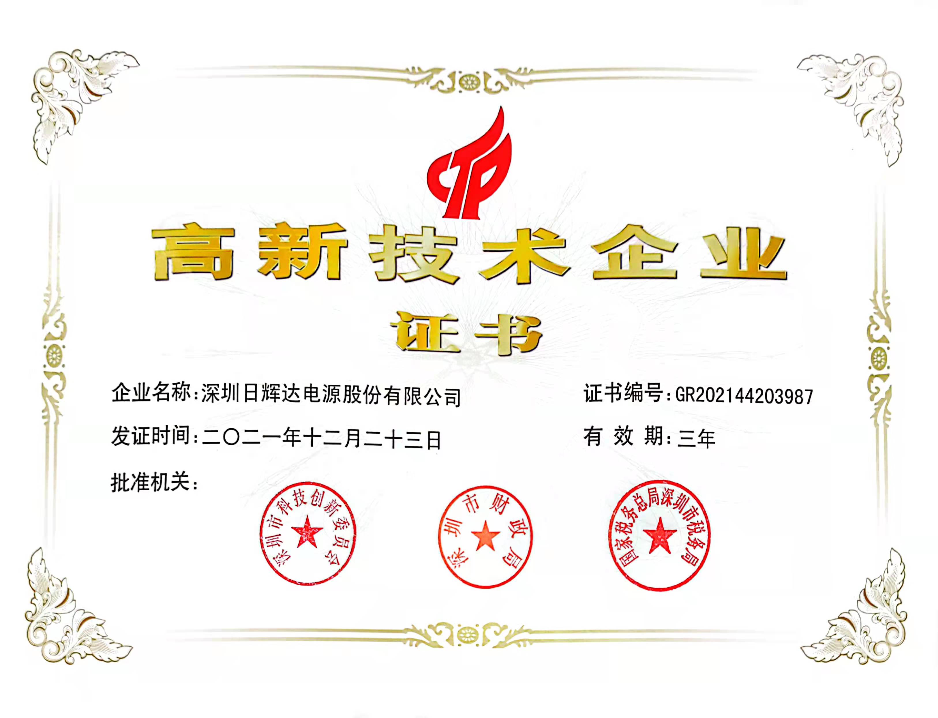 高新技術證書