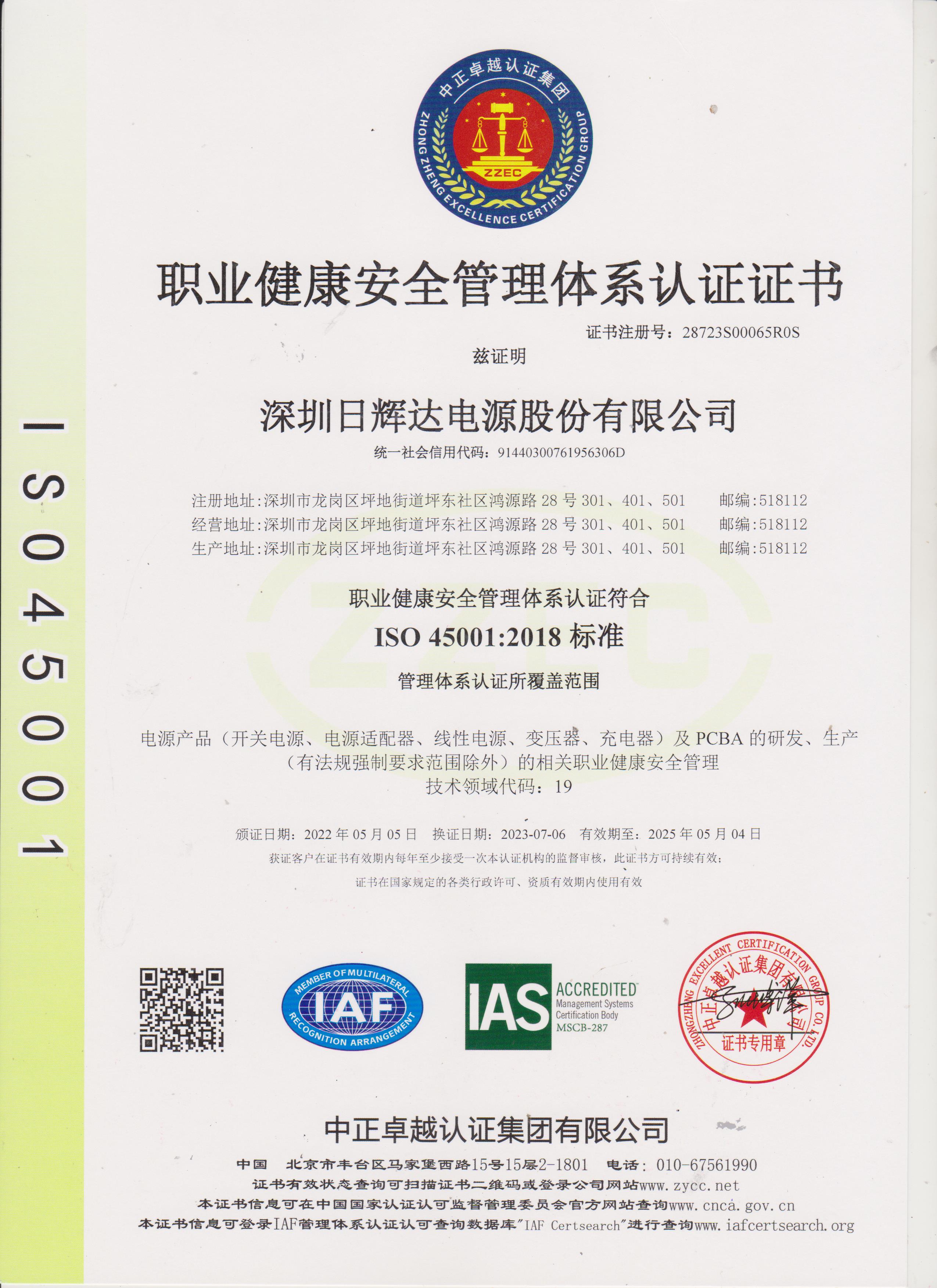 ISO 45001 證書英文版