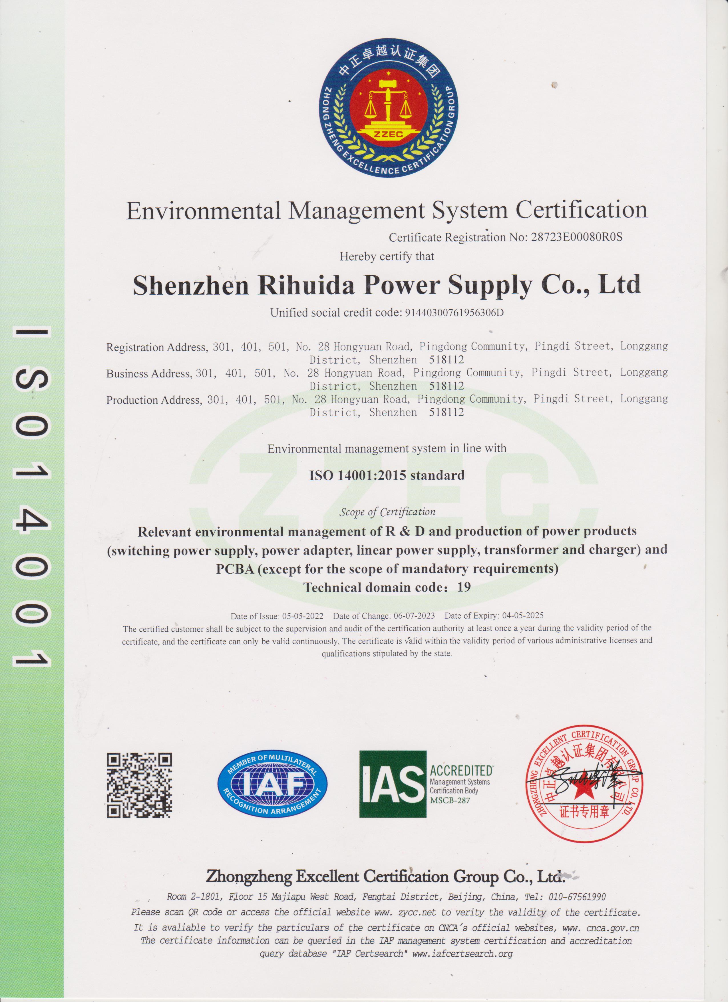 ISO 14001 證書英文版
