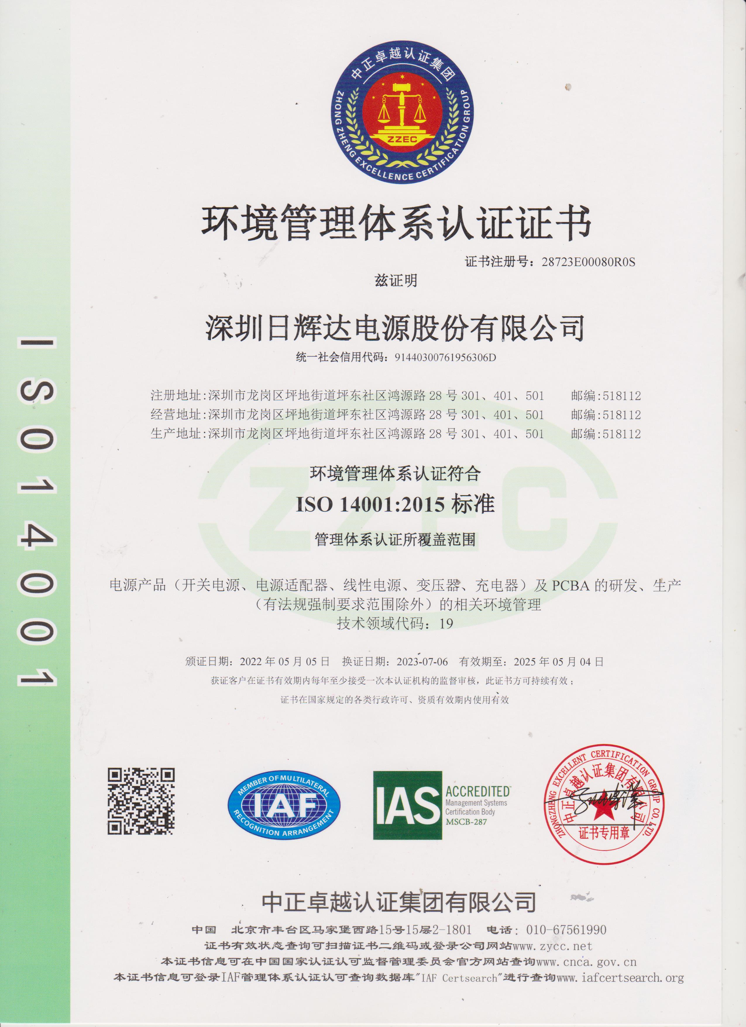 ISO 14001 證書中文版