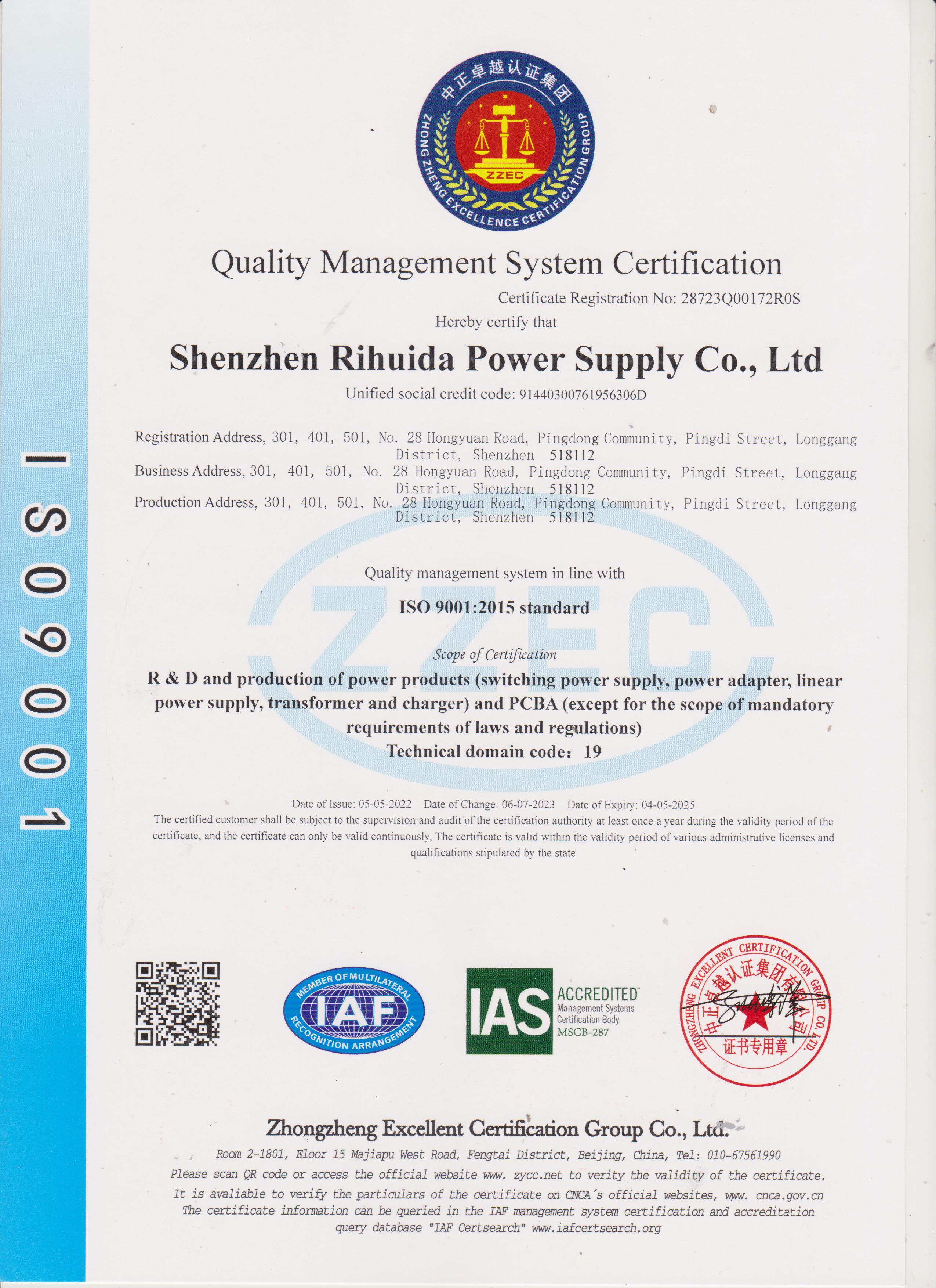 ISO 9001證書英文版
